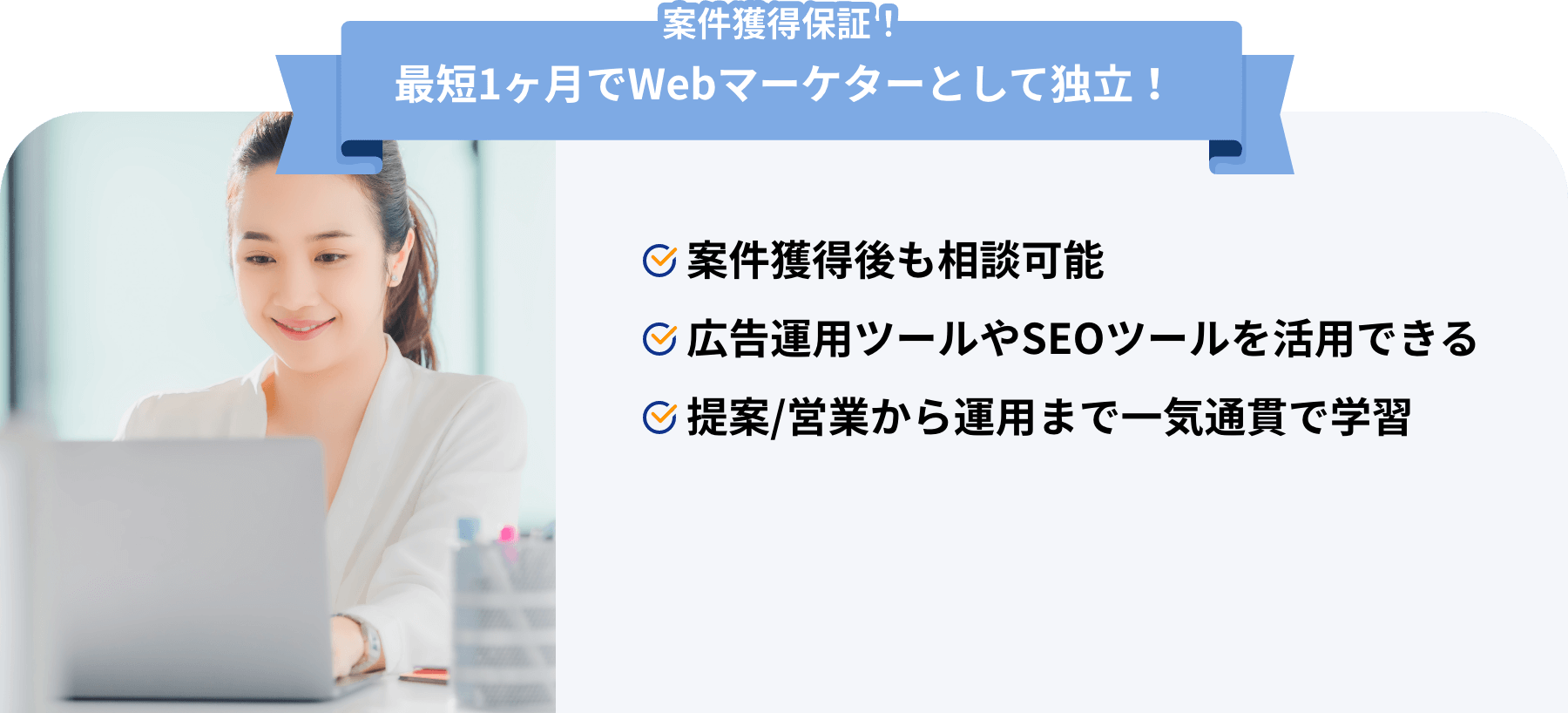 現役Webマーケターによる監修で未経験からでも実務経験レベルのスキルが身につく